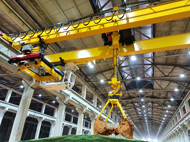 我公司生產的智能全自動抓斗起重機,實現了遠程可視操作。它具有高精度、精準識別、多車協同、智能調度等特點,開啟了起重機信息化、智能化、高效化無人系統新時代。 以垃圾抓斗起重機(簡稱垃圾吊)為例,它是現代城市各種垃圾焚燒發電廠垃圾供料系統的核心設備,位于垃圾儲存坑的上方,主要承擔對垃圾的投料、搬運、攪拌、取物和稱重等作業,工作環境十分惡劣。采用自動化控制,并配備有遠程操控系統。完成數據設定后,起重機將自動完成垃圾坑揭蓋、垃圾抓取與投放動作。不僅使工作人員遠離了惡劣環境,更節省了輔助工作時間,大大的提高了生產效率它還具備預報警、超載保護、防傾、防撞、自定位等先進功能,確保了起重機在實際操作中的安全性。垃圾給料量等重要數據將同步傳回遠程操控系統,保證了數據采集的時效性。數據經系統統計處理后,將簡單明了地顯示在顯示屏上,為工作人員的下一步工作提供重要參考依據。
