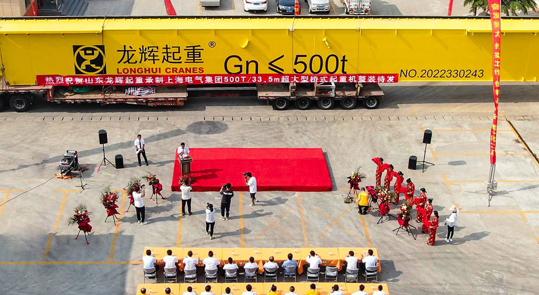 鼓樂齊鳴 歡聲雷動(dòng)。儀式現(xiàn)場(chǎng)每一位在場(chǎng)嘉賓強(qiáng)烈地感受到龍輝起重上下一心、積極進(jìn)取、開拓創(chuàng)新的精神面貌。參加儀式的主要領(lǐng)導(dǎo)有:新泰市人大常委會(huì)副主任、黨組副書記亓桂鋒,羊流鎮(zhèn)黨委書記范育民,羊流鎮(zhèn)黨委副書記、鎮(zhèn)長林曦,羊流鎮(zhèn)武裝部長李宗武以及龍輝起重各級(jí)領(lǐng)導(dǎo)、各地合作商及銷售經(jīng)理等,現(xiàn)場(chǎng)200余人共同見證了此次出廠儀式。