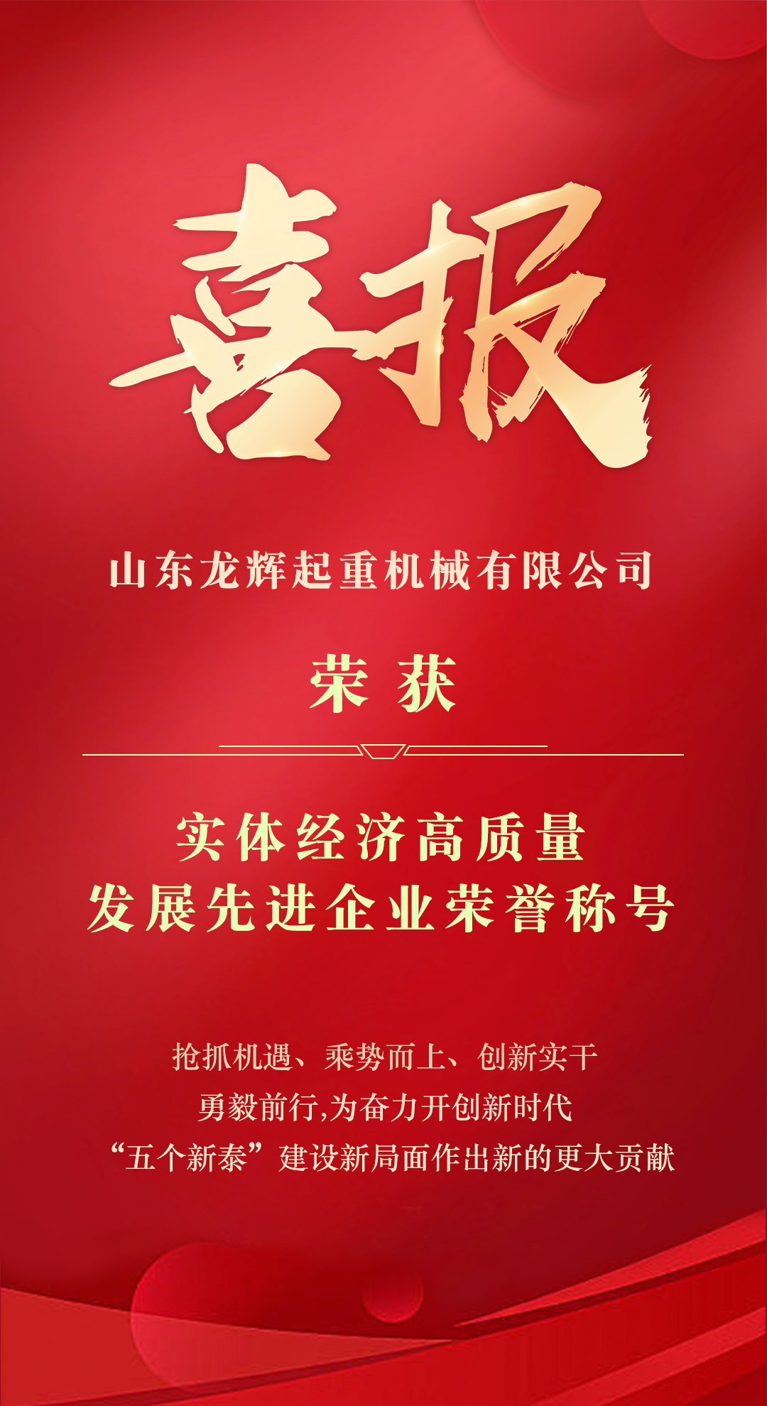 此次獲得多項殊榮,既是對龍輝起重全體職工一整年辛勤勞作的工作成果的褒獎,也包含著市委、市政府對龍輝起重的殷切期望。